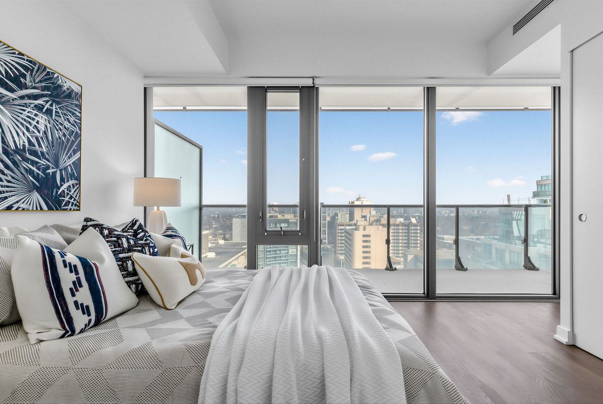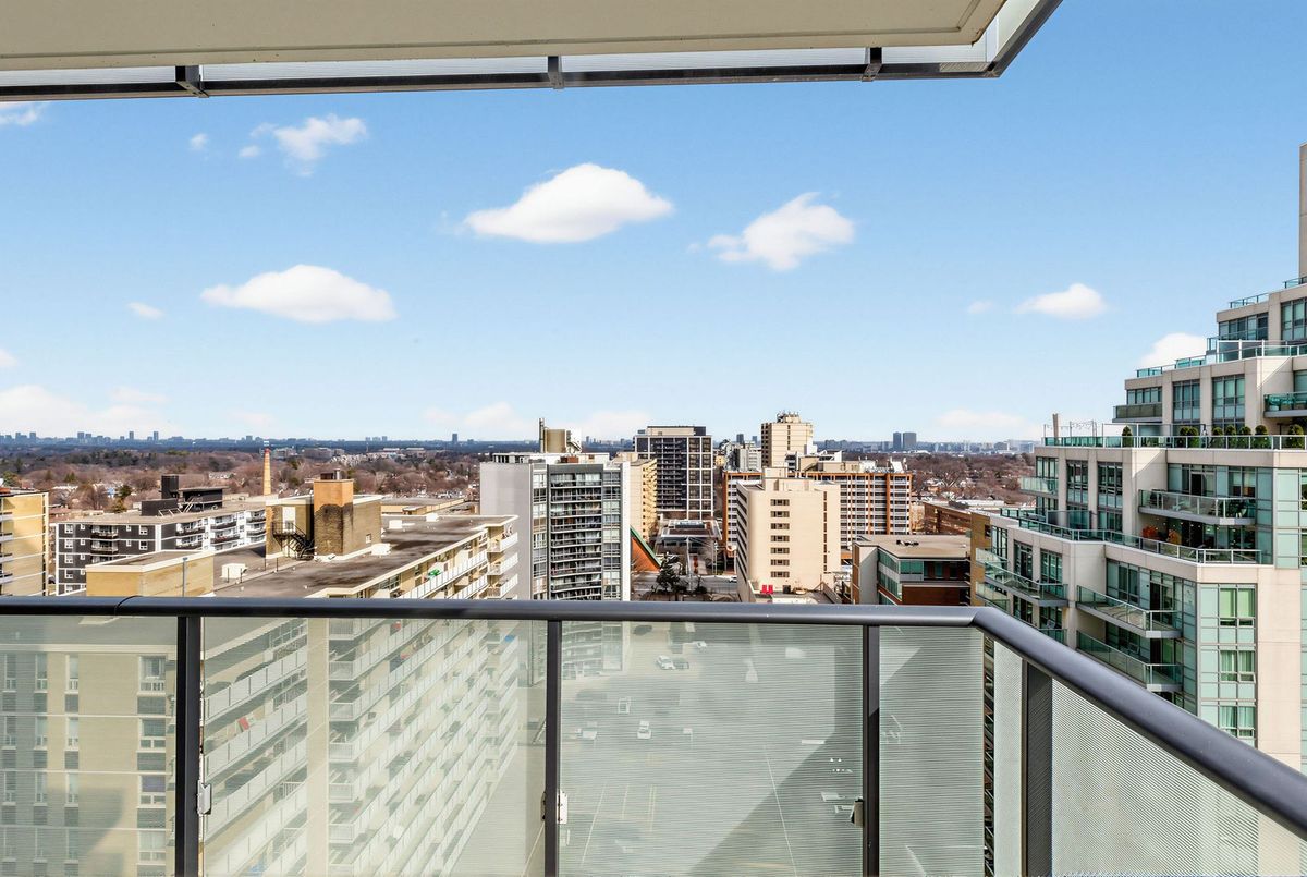 Enjoy your morning coffee with the sunrise from this bright, spacious & quiet CORNER unit with clear SE views, floor to ceiling windows & wrap around 310 sq ft balcony! Approx 641 sq ft with 1 bedroom plus den for your work from home lifestyle or personal home office. This corner unit is freshly painted and turnkey, just unpack & move right in! Top tier amenities include a fully equipped gym & yoga studio, terrace with barbqs, outdoor pool & hot tub, sauna, party room, billiards room, bike storage & 24 hr concierge. Front hall & bedroom each have double sliding closet doors with plenty of storage. Hightop kitchen island/table with 4 stools (can stay or leave). This is a very special unit surrounded by light and sky with an airy, spacious feeling. Tucked away at Yonge & Eglinton, this unit faces quiet, clear spectacular views yet it is just steps away from the Yonge/Eglinton subway, LRT, Loblaws, LCBO & everything you will ever need or want that this trendy, midtown location offers. Ideal for professionals or creatives to call home or perfect for investors! If you are looking to own a piece of the sky, this is the perfect place for you to call home. Priced to sell!!!